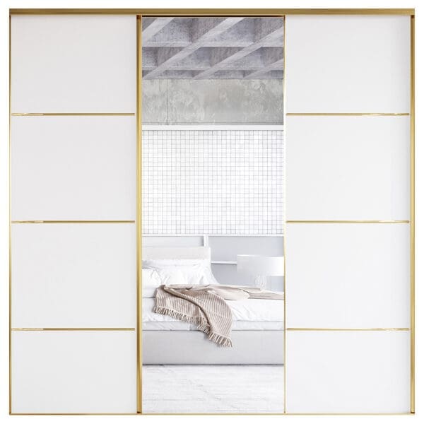 SKU: Front szafy przesuwnej 200 biały(szprosy ZŁOTE + 1lustro)
