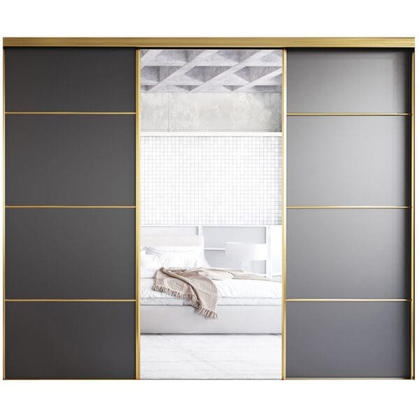SKU: Front szafy przesuwnej 250 czarny(szprosy ZŁOTE + 1lustro)