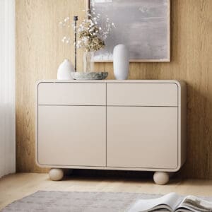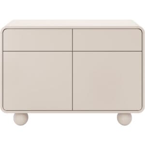 Komoda je vhodná pro ty, kteří hledají stabilní a univerzální úložný kus do obývacího pokoje, ložnice nebo předsíně. Díky neutrálnímu kašmírovému odstínu snadno zapadne do různých barevných kombinací a interiérových stylů.