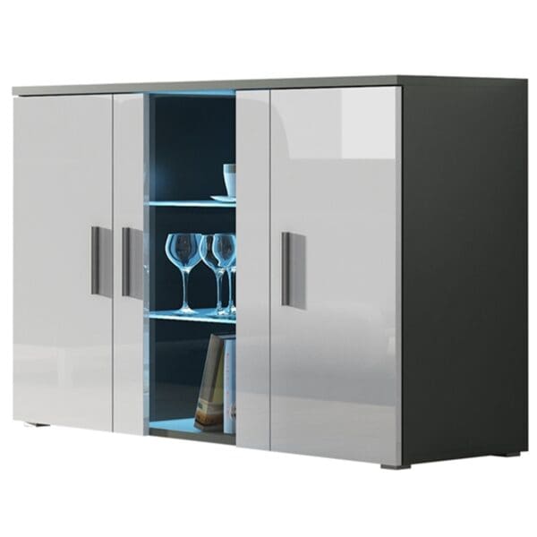 Komoda RTV BRNO SH3G šedá / bílý lesk