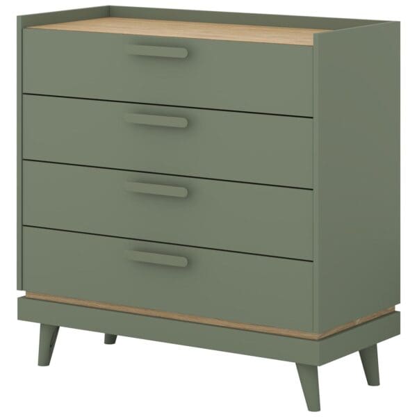 SKU: 24GDOH27 Komoda SCANDI 4S zgaszona zieleń-dąb olejowany