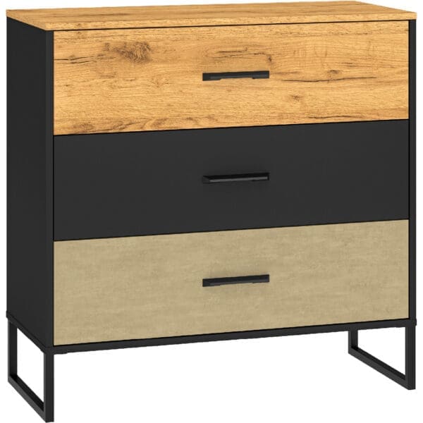 SKU: Komoda CLINT 05(COLT 05)dąb craft złoty + czarny + stal premium