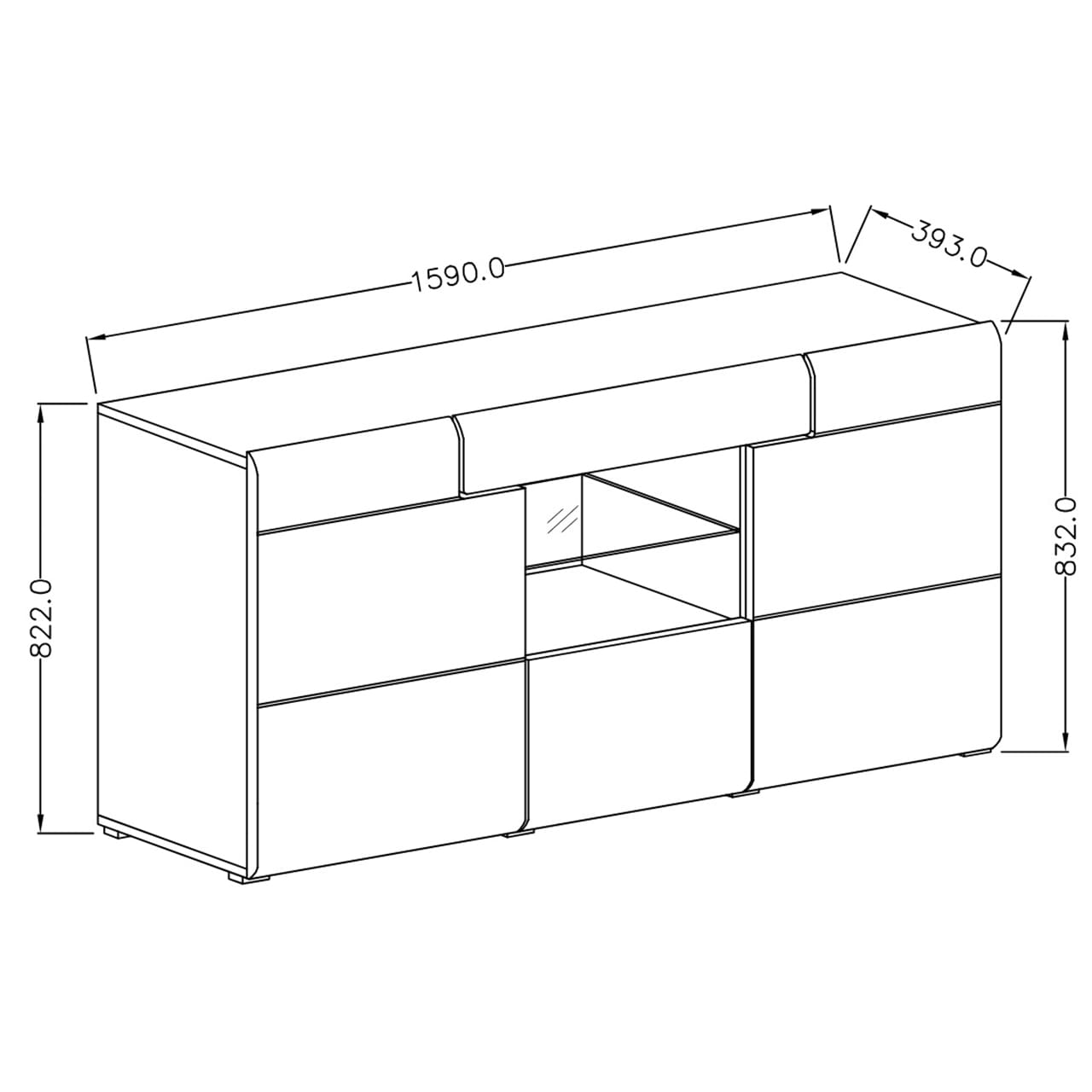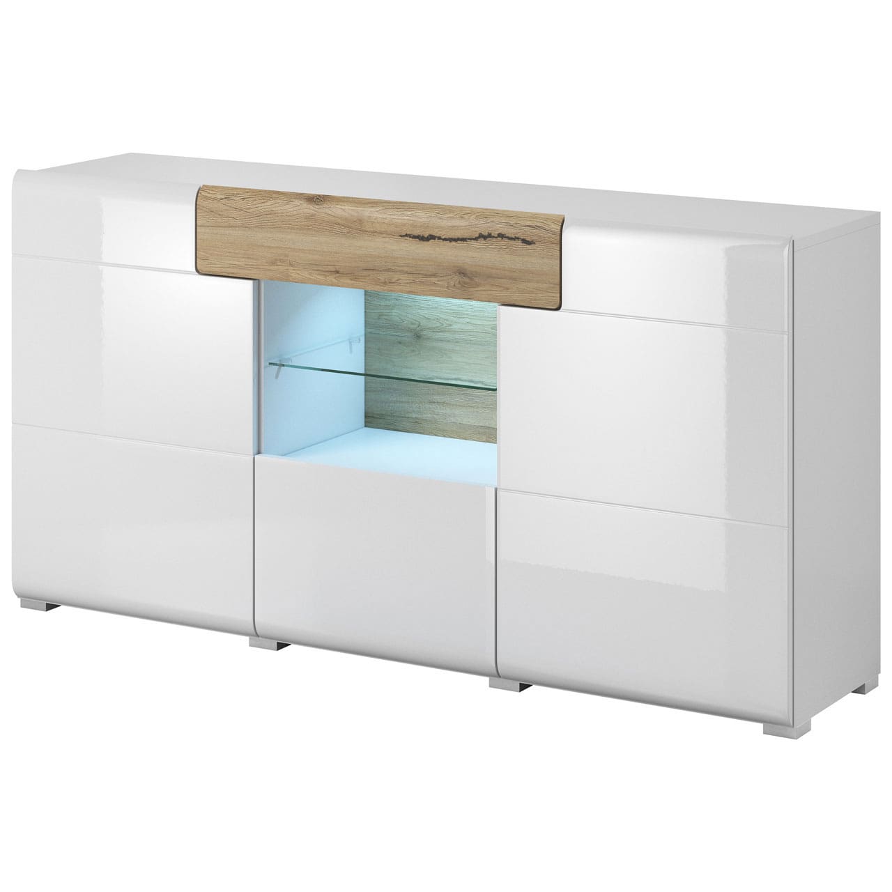 SKU: 2494DW26 Komoda z wnęką 3 drzw. 1 szufl. TOLEDO san remo / biały połysk
