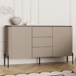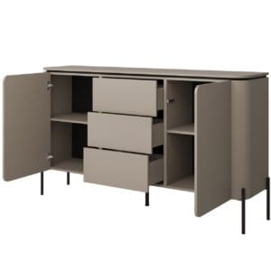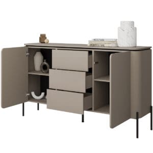 Komoda ELBO 26 congo kombinuje přehledné členění úložného prostoru s konstrukčními prvky, které oceníte při dlouhodobém užívání. Dekor Congo dodává komodě neutrální tón, který se snadno začlení do různých interiérů, aniž by ztratil praktičnost.