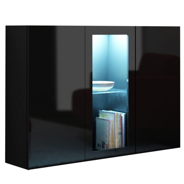 Závěsná vitrína plná 90 GOVI VG5D černá / černý lesk