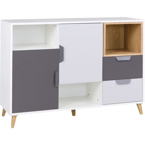 Komoda RTV JOKI JK10 bílá / grafit / šedá