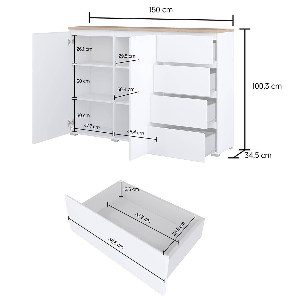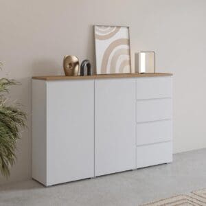 SKU: 247VOJ45 MODO Komoda 2D4S biały-dąb Mauvella-biały ZAKAZ DE,AT,CH