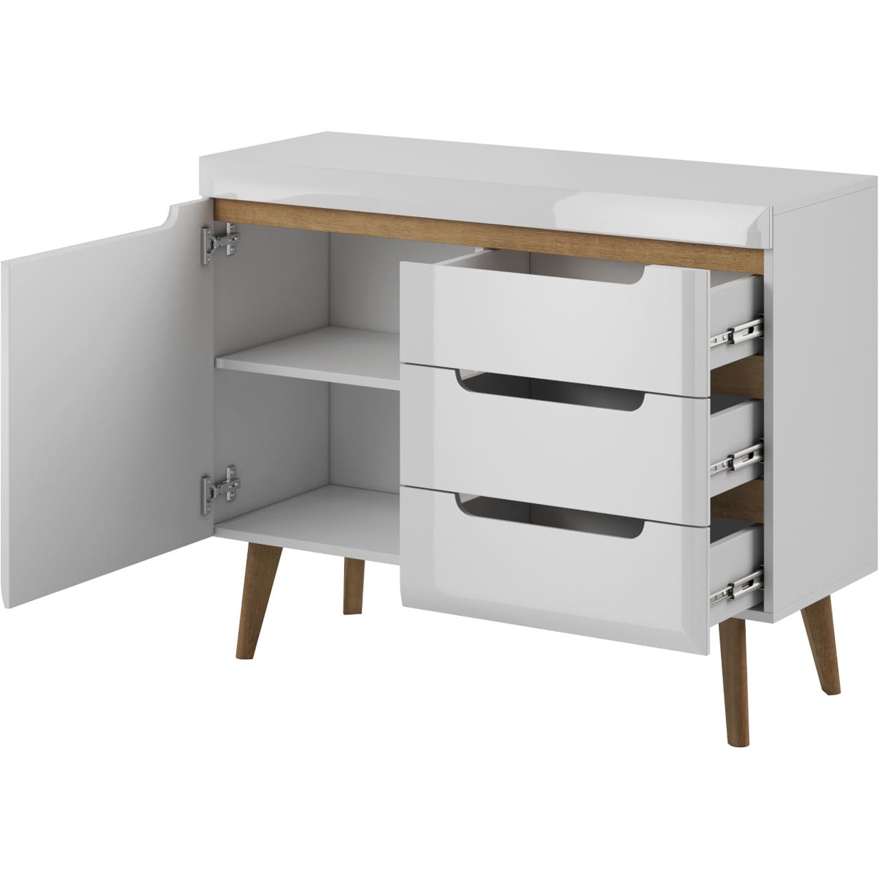 SKU: Komoda NORDI NKSZ107 (NARDI 07) biały połysk / dąb riviera