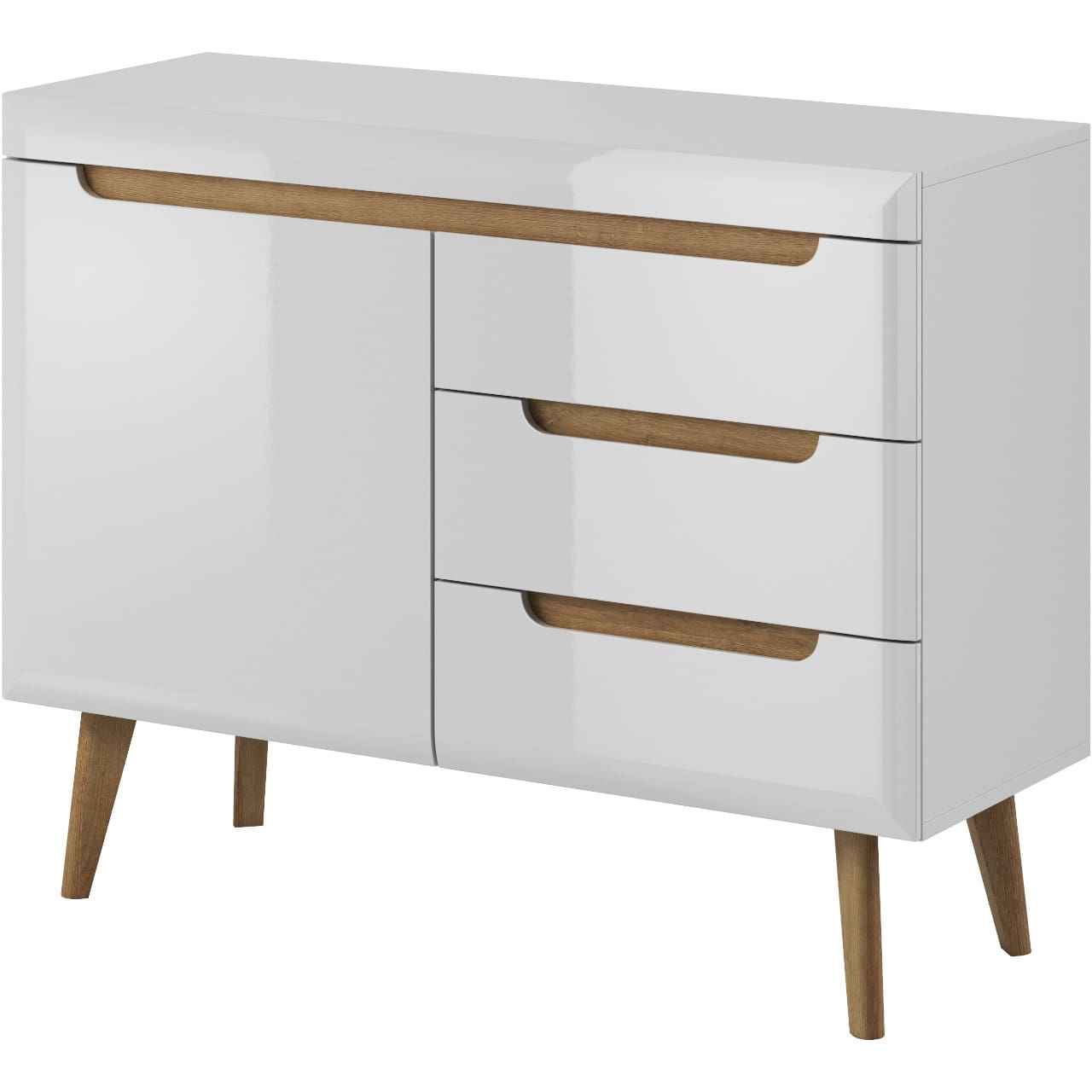 Komoda NARDI 08 bílý lesk / dub riviera