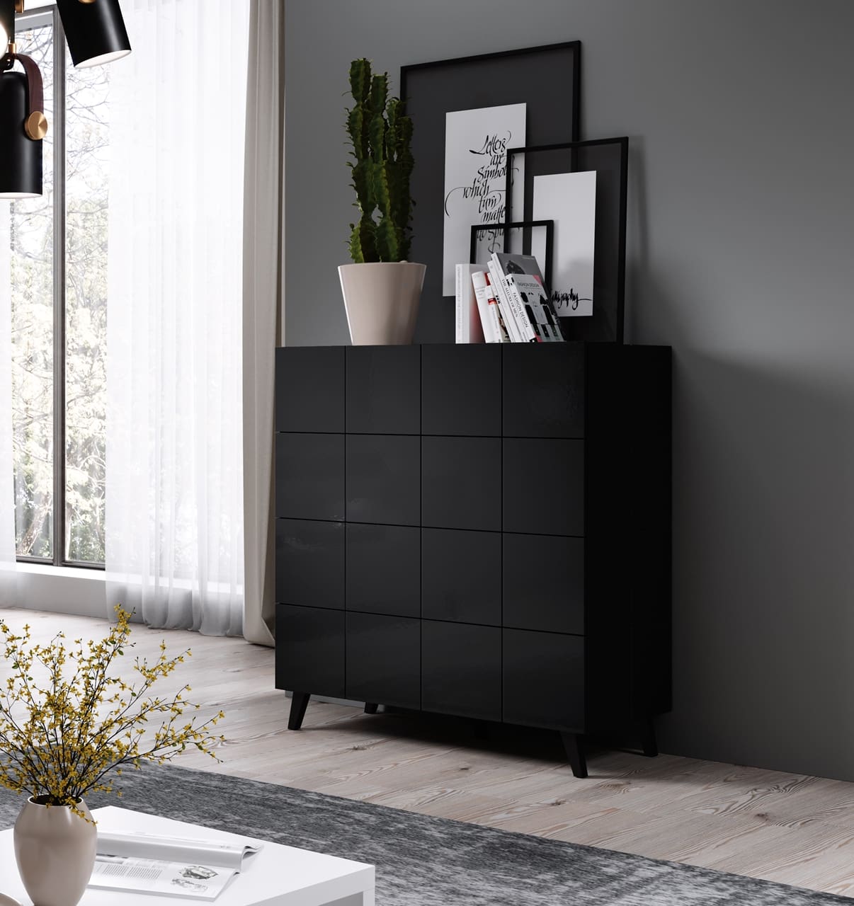 Komoda RAJA 4S černý lesk