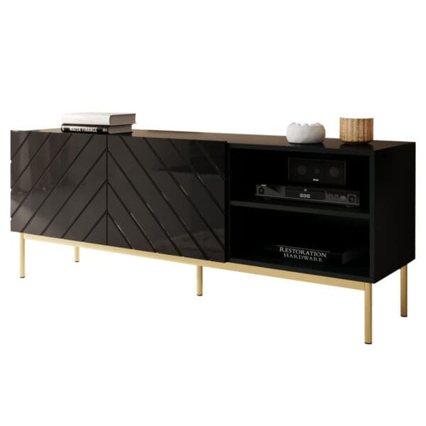 SKU: ABETO Komoda RTV 150 czarna / złoty stelaż