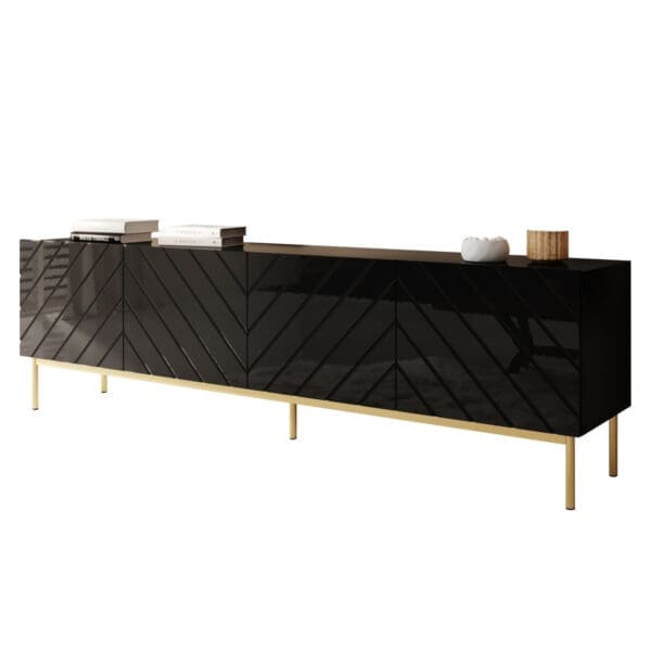 SKU: ABETO Komoda RTV 200 czarna / złoty stelaż