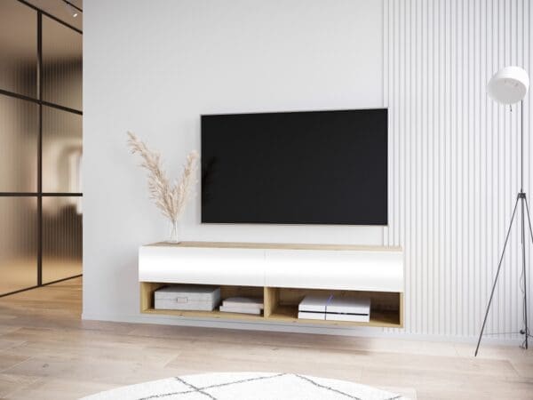 Komoda RTV MARRO 140 Dub Artisan / Bílý lesk VÝPRODEJ