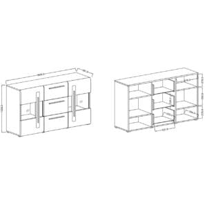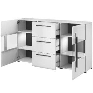 SKU: 2497FJ28 Komoda 2 drzw. Szkl. 3 szufl. TULSA biały / biały połysk