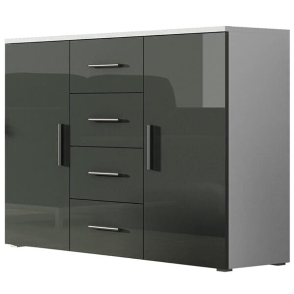 Komoda BRNO SH8F bílá / šedý lesk