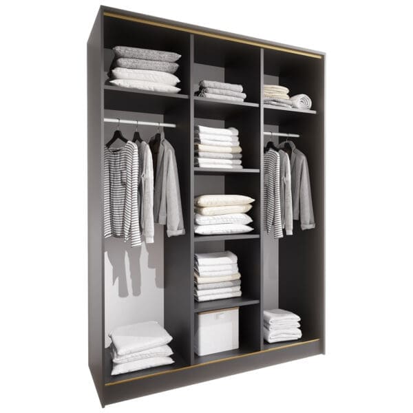 SKU: Korpus szafy przesuwnej 150 czarny(okucia złote;2 drążki, bez szuflad) Kategorie: , Štítek: