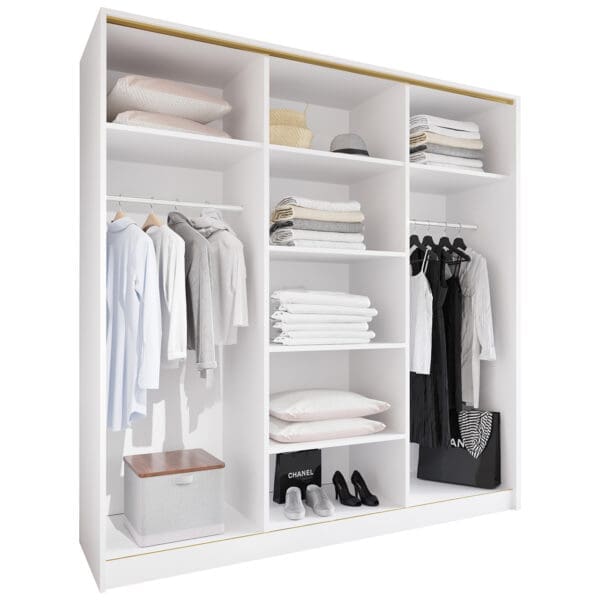 SKU: Korpus szafy przesuwnej 180 biały(okucia złote;2 drążki, bez szuflad) Kategorie: , Štítek: