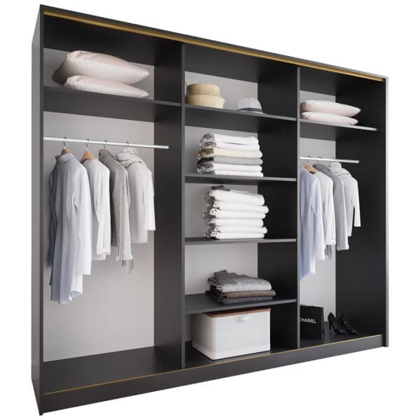 SKU: Korpus szafy przesuwnej 250 czarny(okucia złote;2 drążki, bez szuflad)