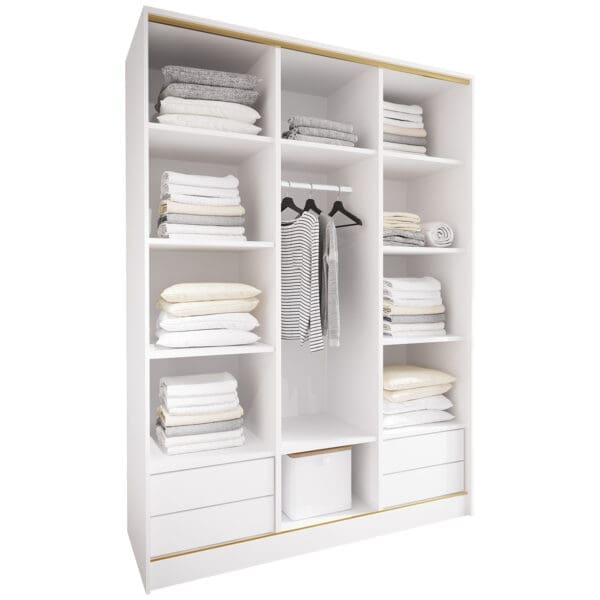 SKU: Korpus szafy przesuwnej 150 biały(okucia złote;1 drążek, szuflady)