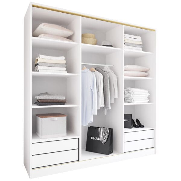 SKU: Korpus szafy przesuwnej 180 biały(okucia złote;1 drążek, szuflady)