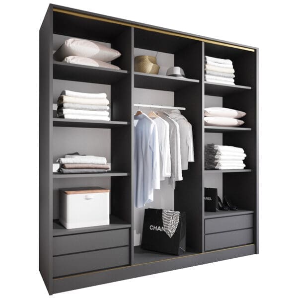 SKU: Korpus szafy przesuwnej 180 czarny(okucia złote;1 drążek, szuflady)