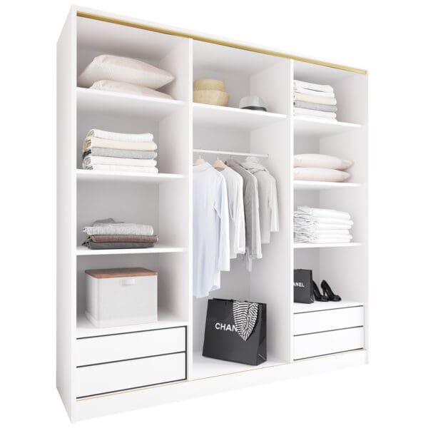 SKU: Korpus szafy przesuwnej 270 biały(okucia złote;1 drążek, szuflady)