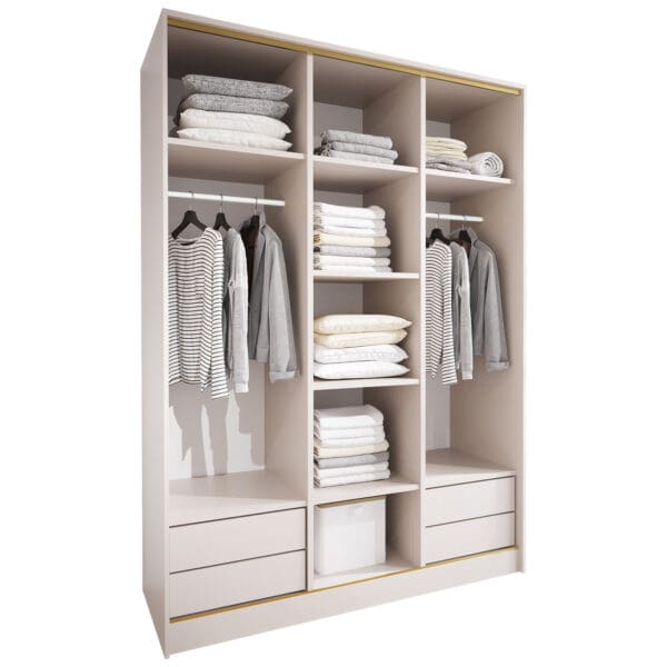 SKU: Korpus szafy przesuwnej 150 kaszmir(okucia złote;2 drążki, szuflady)