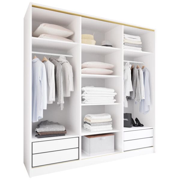SKU: Korpus szafy przesuwnej 180 biały(okucia złote;2 drążki, szuflady)