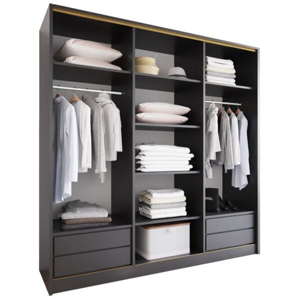 SKU: Korpus szafy przesuwnej 180 czarny(okucia złote;2 drążki, szuflady)