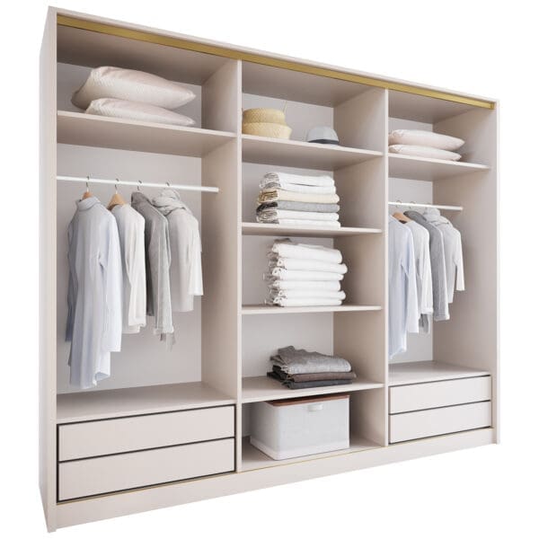 SKU: Korpus szafy przesuwnej 270 kaszmir(okucia złote;2 drążki, szuflady)