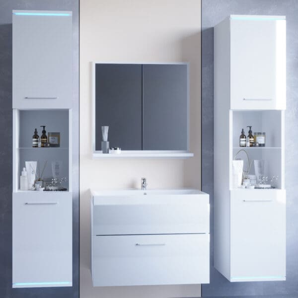 DO1 – Skříňka vysoká (30/140/32) – 2ks LP2 – Skříňka pod umyvadlo (60/46/35) LP4 – Koupelnové zrcadlo (56/56/12) |