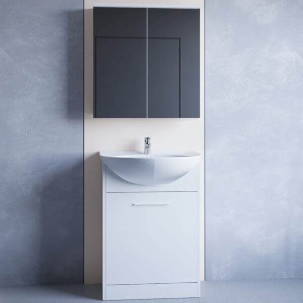 SL2 – Skříňka pod umyvadlo (52/74/30) LP6 – Koupelnová skříňka se zrcadlem (60/64/15) |
