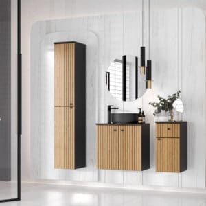 Skříňka do koupelny vysoká ASTO 01 černý / dub