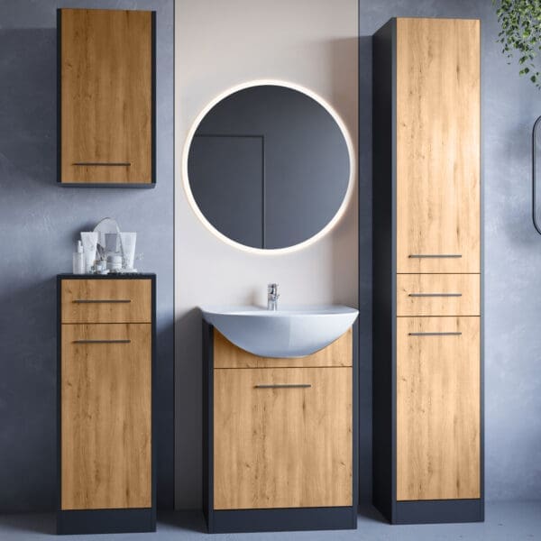 Buďte první, kdo ohodnotí „Koupelnový nábytek se zrcadlem SLIDO LED černý / dub artisan“ Zrušit odpověď na komentář