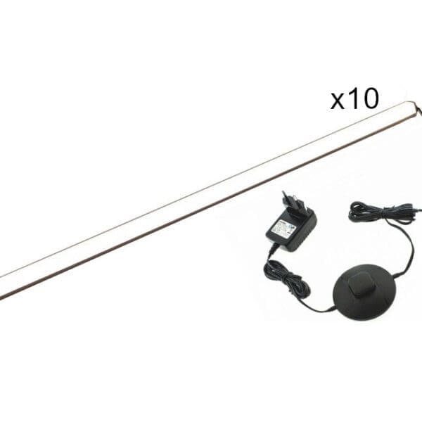 SKU: Zestaw 10x profil 5x10 31cm COB 4,8W Naturalny, kabel 2m, profil podklejony taśma 2str 1x zasilacz 24W z wyłącznikiem nożnym i rozdzielaczem led 10-pkt tuba 40cm