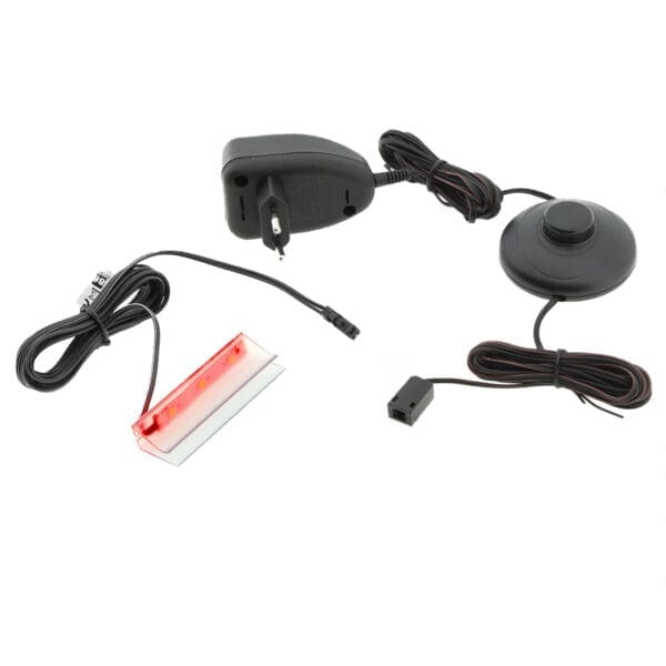 – 1 x klip LED PCV s dvoumetrovým kabelem zakončeným zástrčkou MINI LED – Zdroj napájení LED s kabelem, nožním spínačem a rozbočovačem |