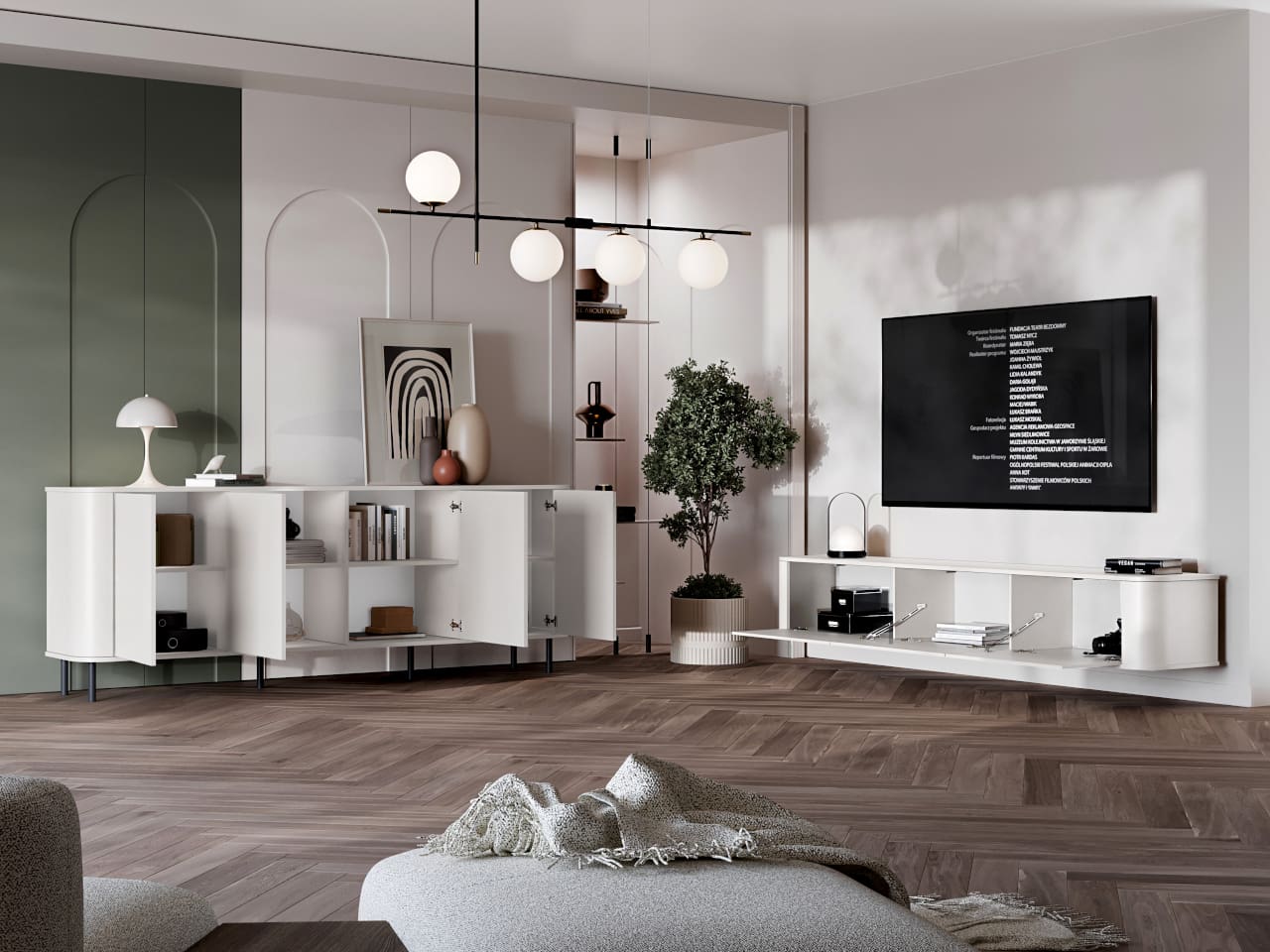 Komoda pod TV Závěsná AZELIO 215 (215/30/35) Komoda 4DN AZELIO (215/75/37) |