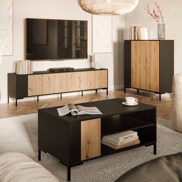 Nábytek do obývacího pokoje CIMER 1 černý / dub artisan