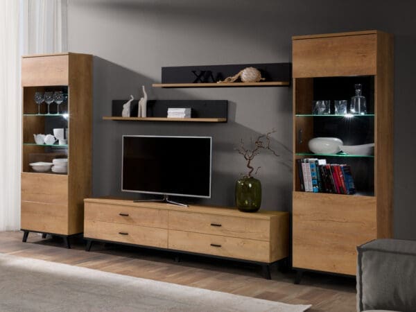 Vitrína Pravá JOHNNY JH2P (61/191/40) Vitrína Levá JOHNNY JH2L (61/191/40) Komoda pod TV JOHNNY JH6 (181/50/40) |