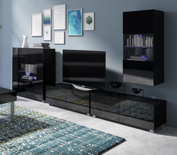 Nábytek do obýváku CALABRIA 17 černý / černý lesk