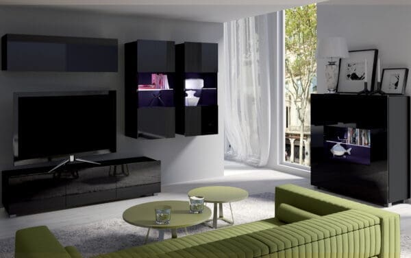 Obývací stěna CALABRIA 32 černá / černý lesk
