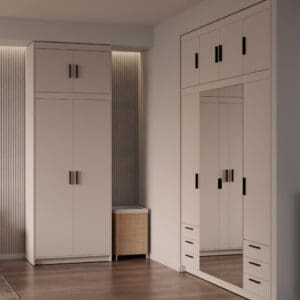Kam: vhodné doplnit skříň v předsíni, šatně nebo ložnici; lze jej použít tam, kde je potřeba využít výšku stěny bez zásadních zásahů do interiéru.