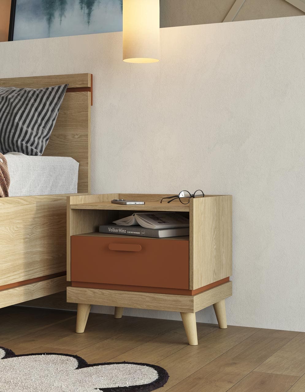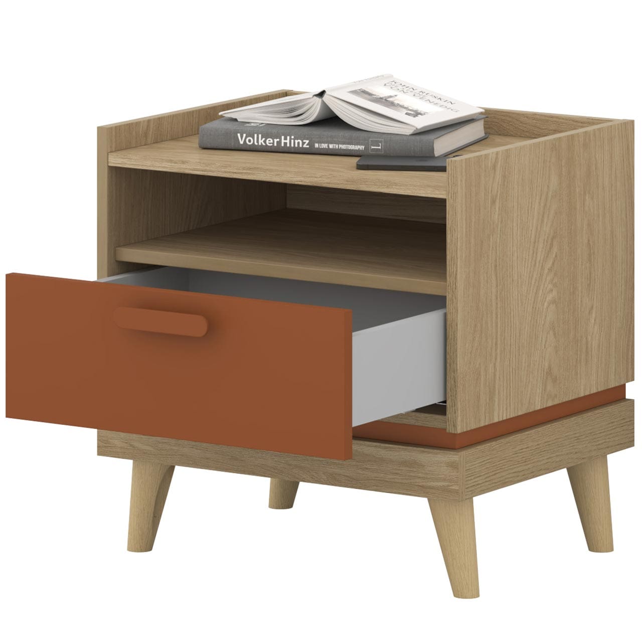 Noční stolek CANDIS 22 dub olejový / cihlový