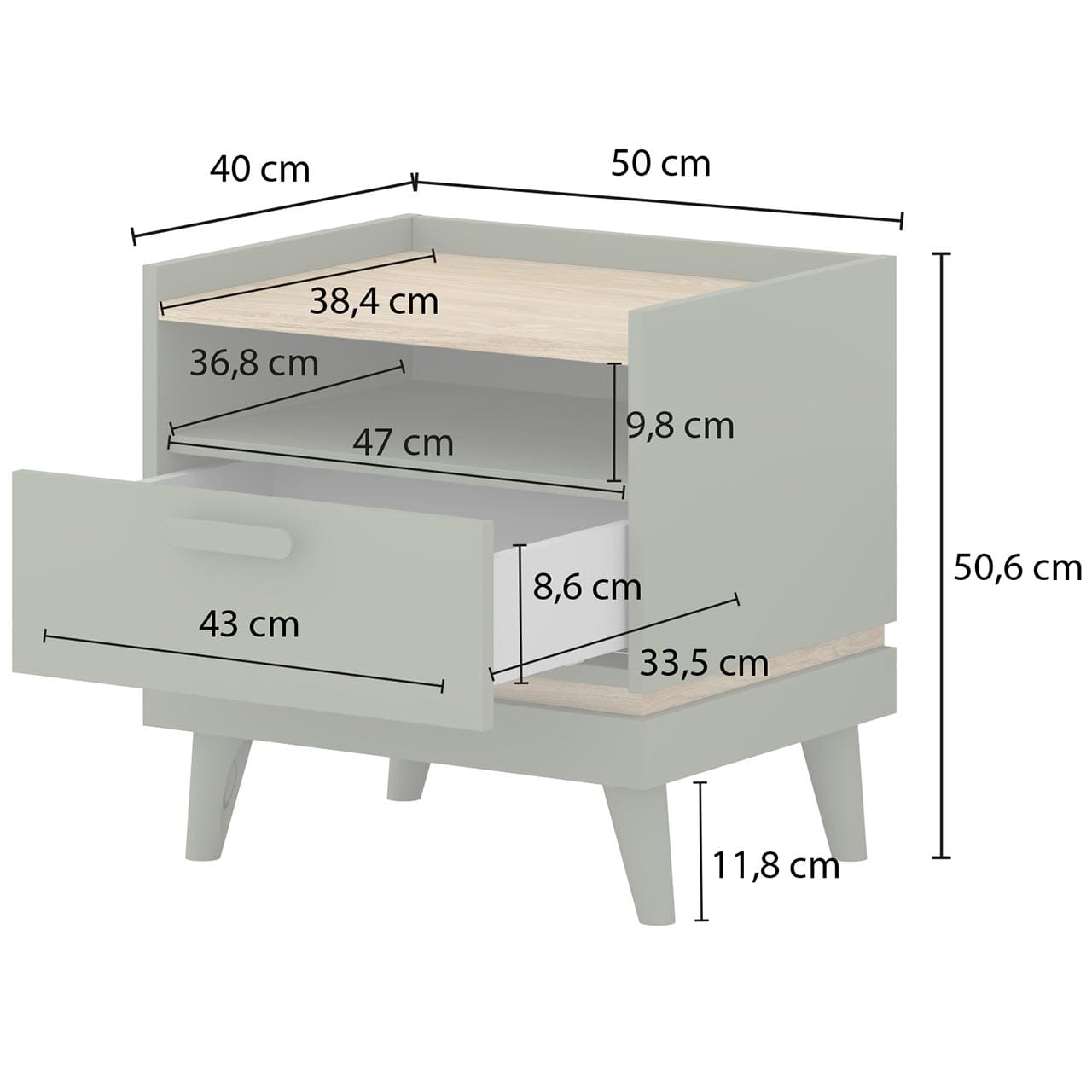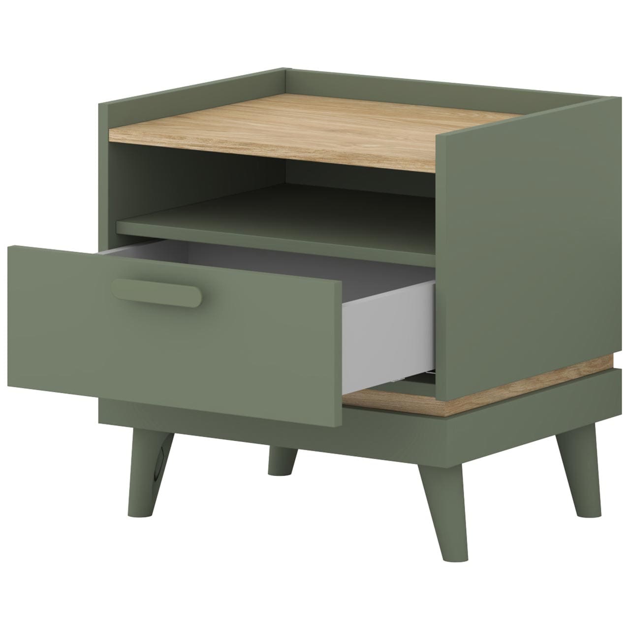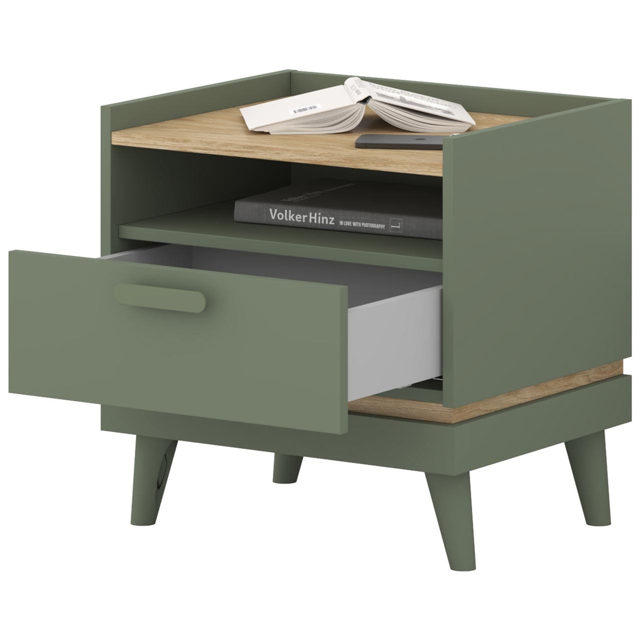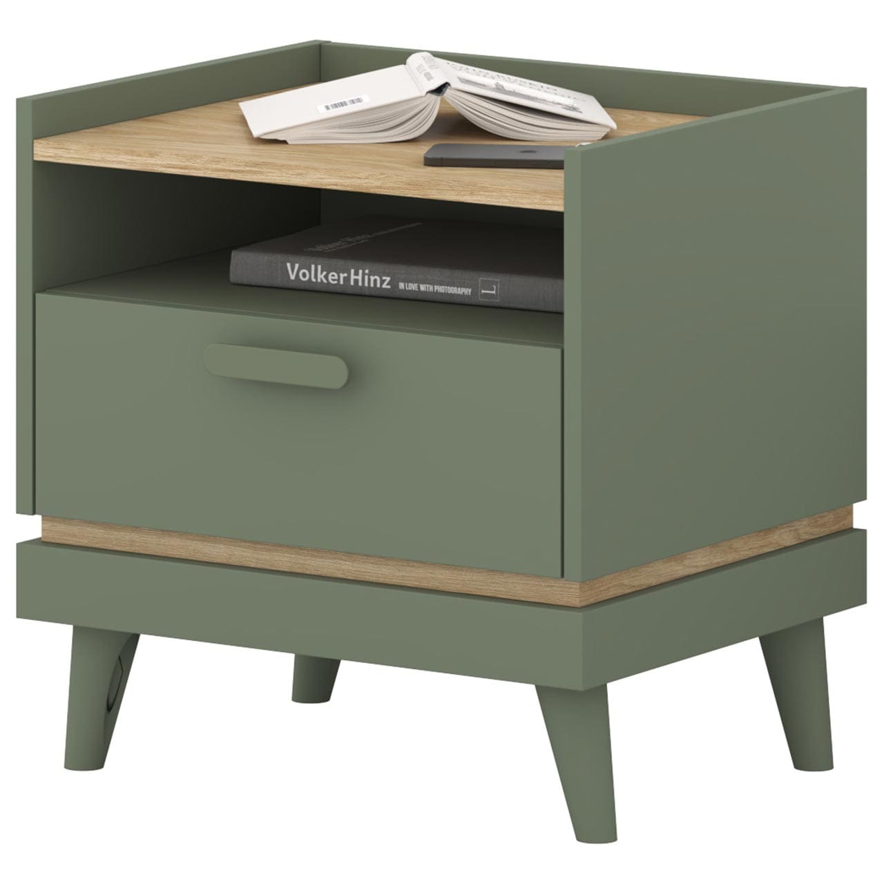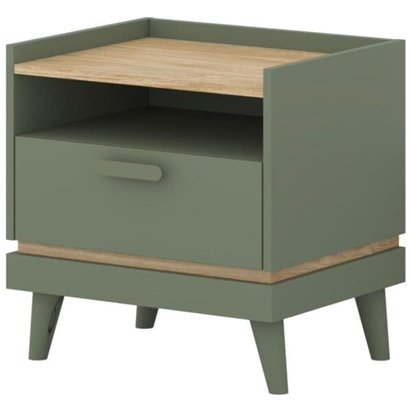 SKU: 24GDOH22 Stolik nocny SCANDI 1S zgaszona zieleń-dąb olejowany