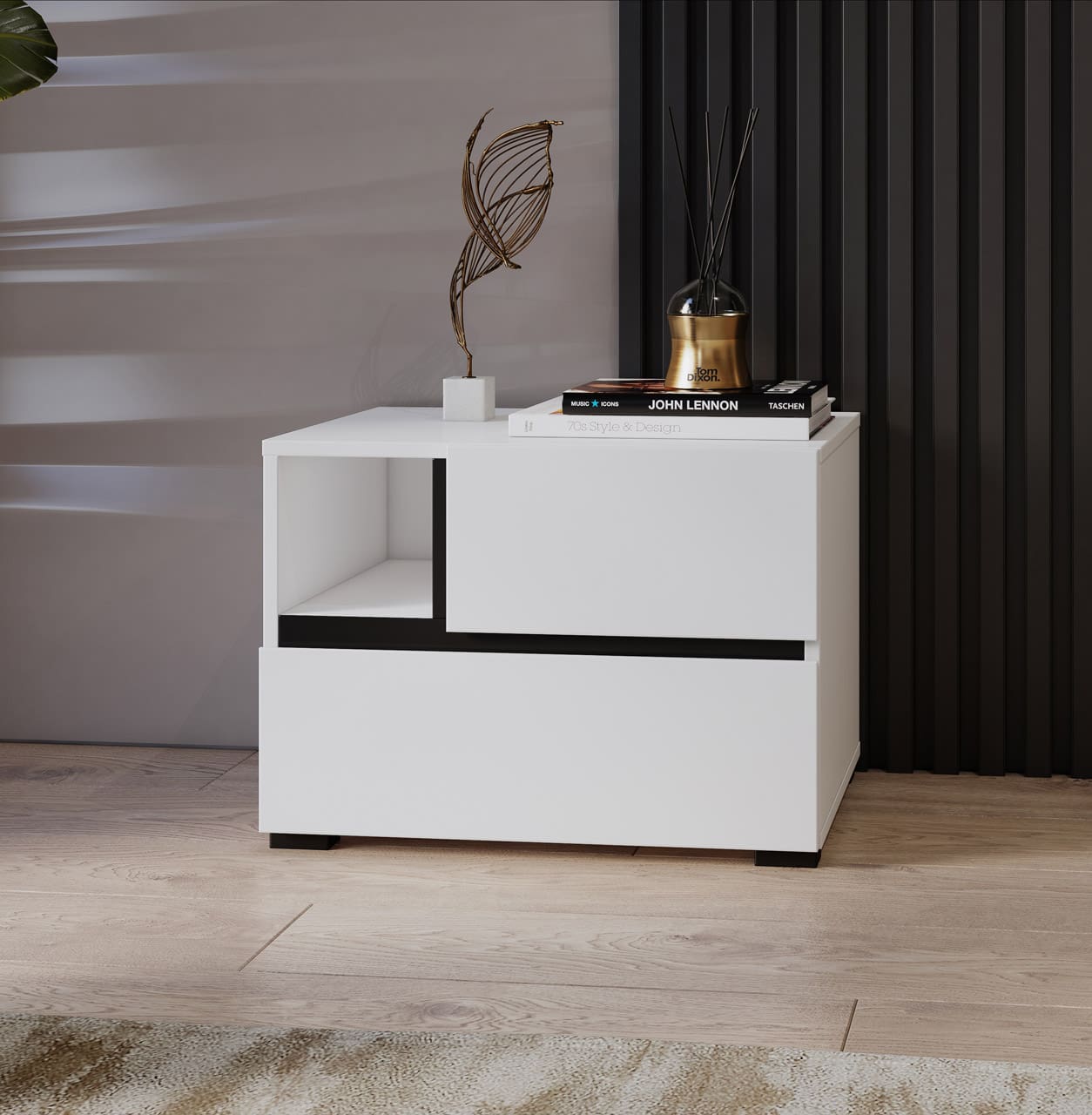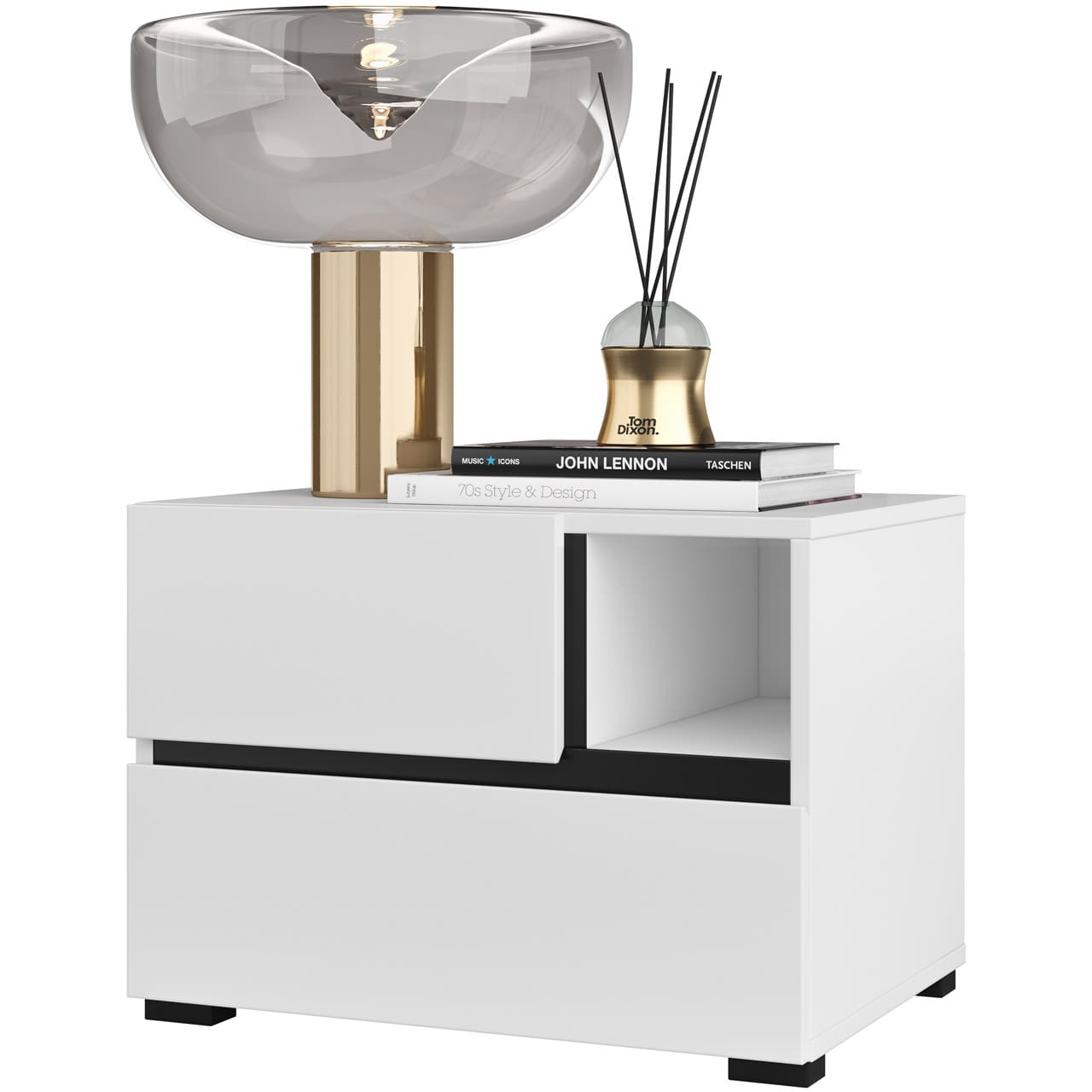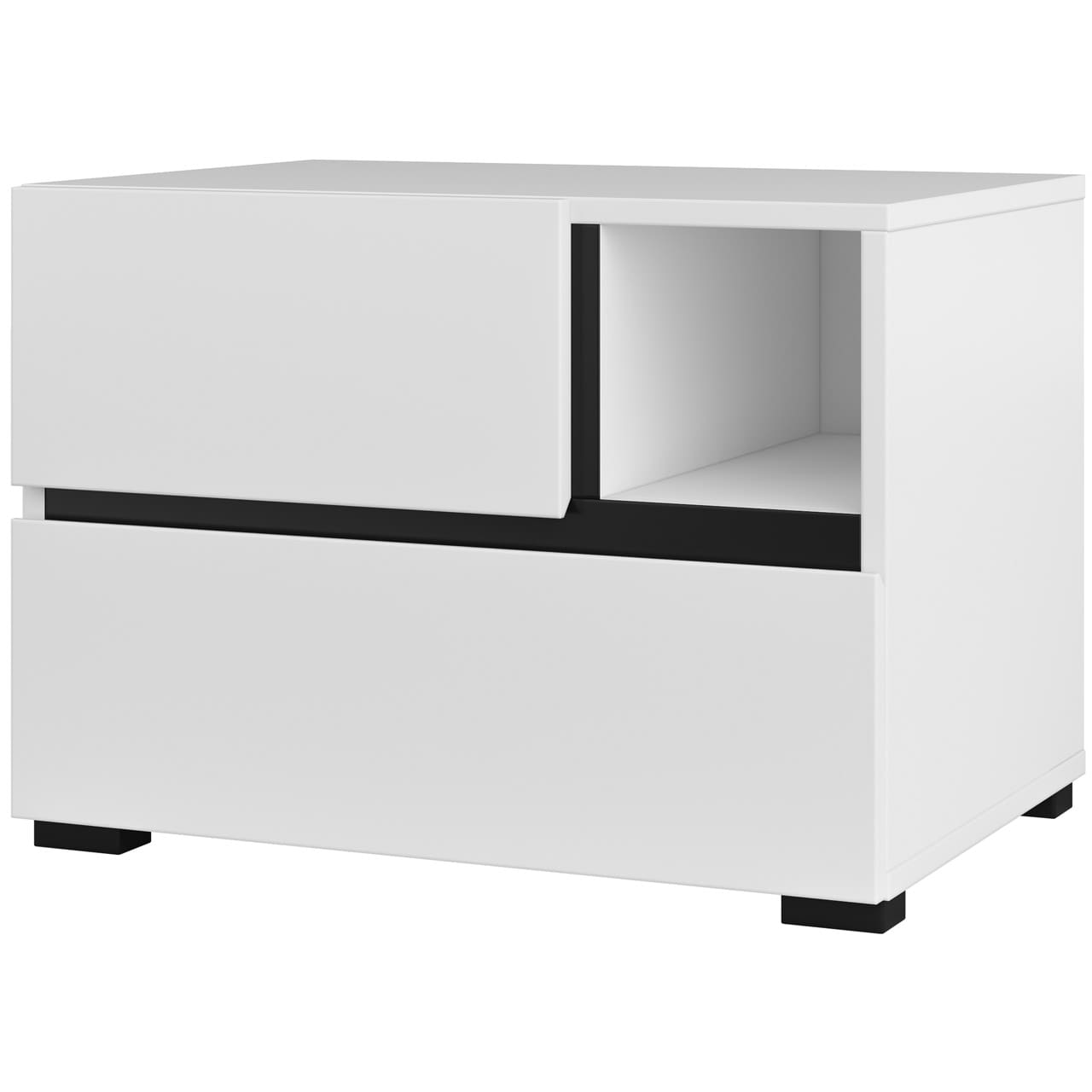 SKU: 249WMY22 CROSS S - Stolik nocny 2 szufl. biały / czarny