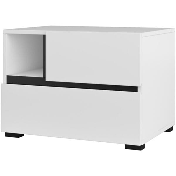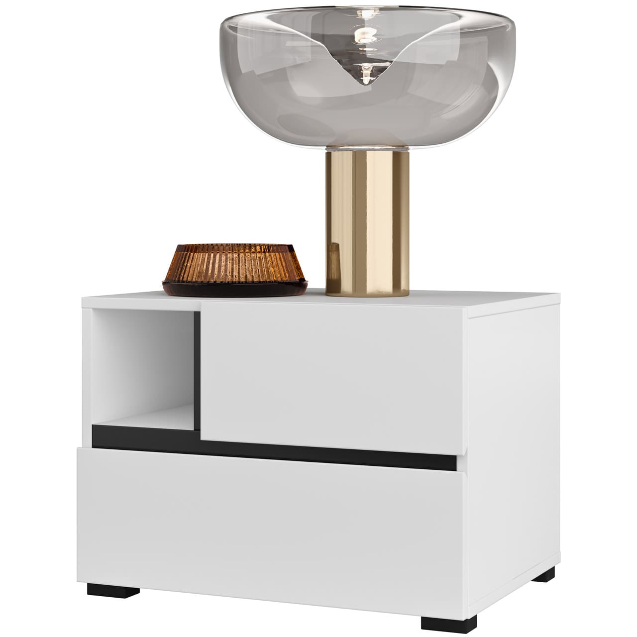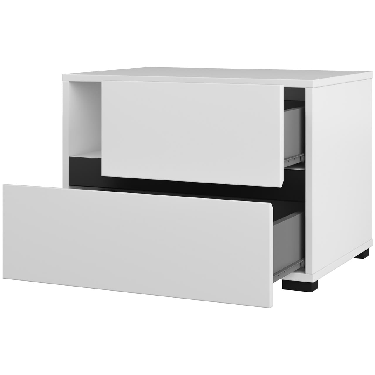 SKU: 249WMY22 CROSS S - Stolik nocny 2 szufl. biały / czarny