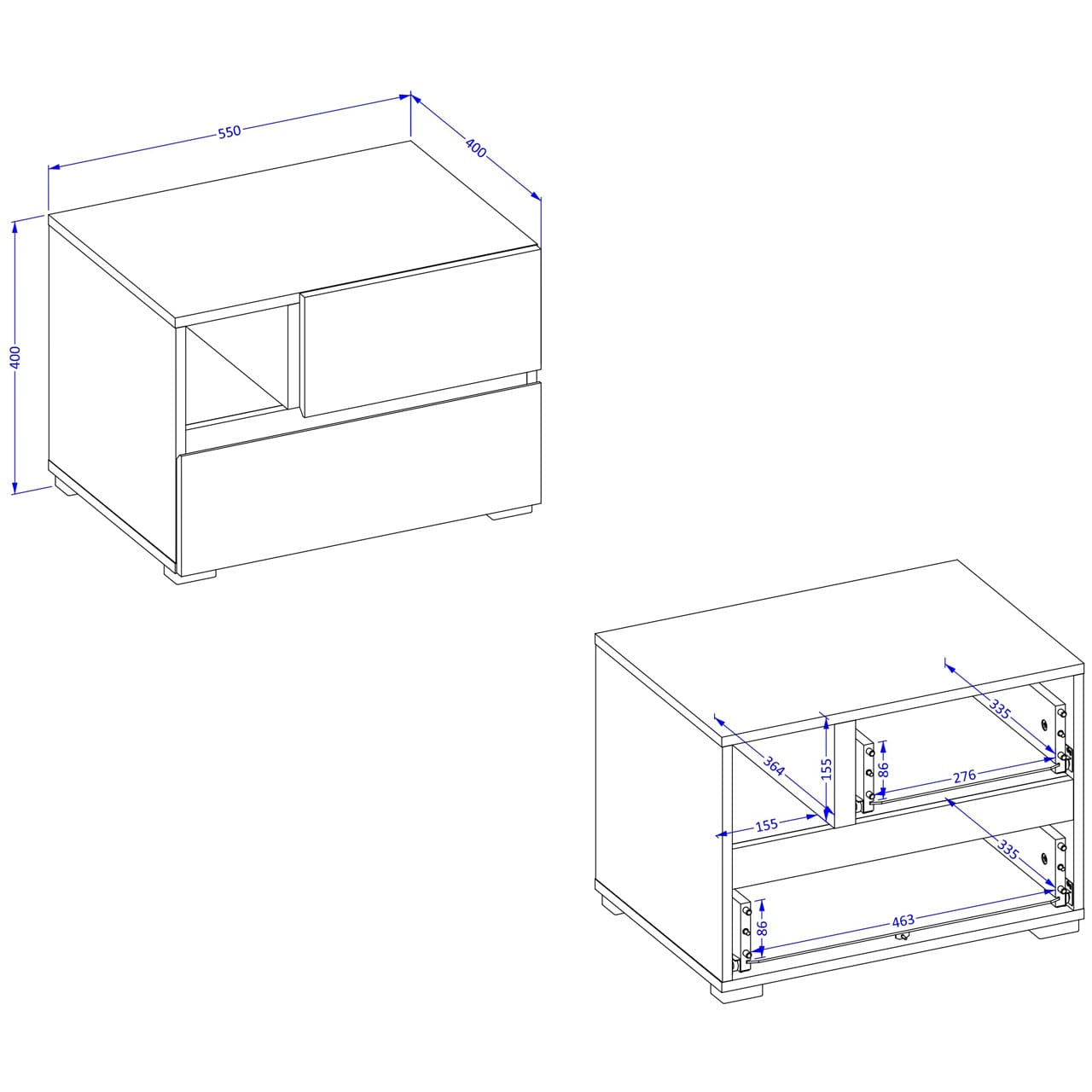 SKU: 24N6MY22 CROSS S - Stolik nocny 2 szufl. wotan / czarny