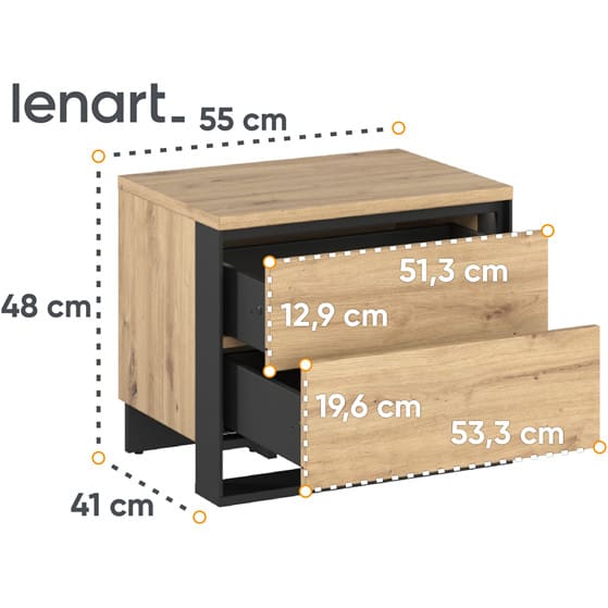 SKU: Stolik nocny 2S z ośw. QUANT QS-03 dab artisan/czarny (QS3DAC)