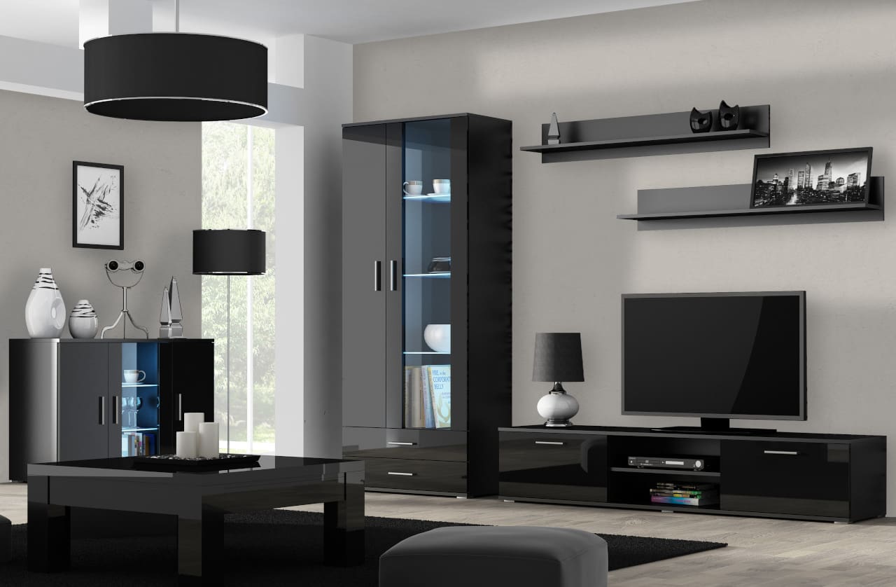 Obývací stěna BRNO 1D černá / černý lesk