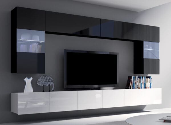 Nábytek do obýváku CALABRIA 6 černý / bílý lesk